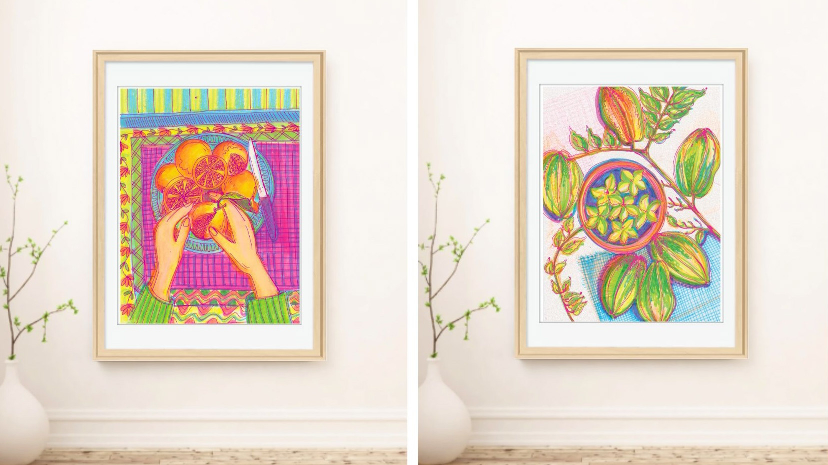 Stories of Home is a visual journey through the quiet poetry of Indian domestic life, where everyday rituals, traditions, and gestures become carriers of memory and meaning. Each artwork reimagines the familiar scenes that shape belonging: women stringing jasmine in the courtyard, families gathering to make sweets before a wedding, a bride marking her new home with red handprints of alta.