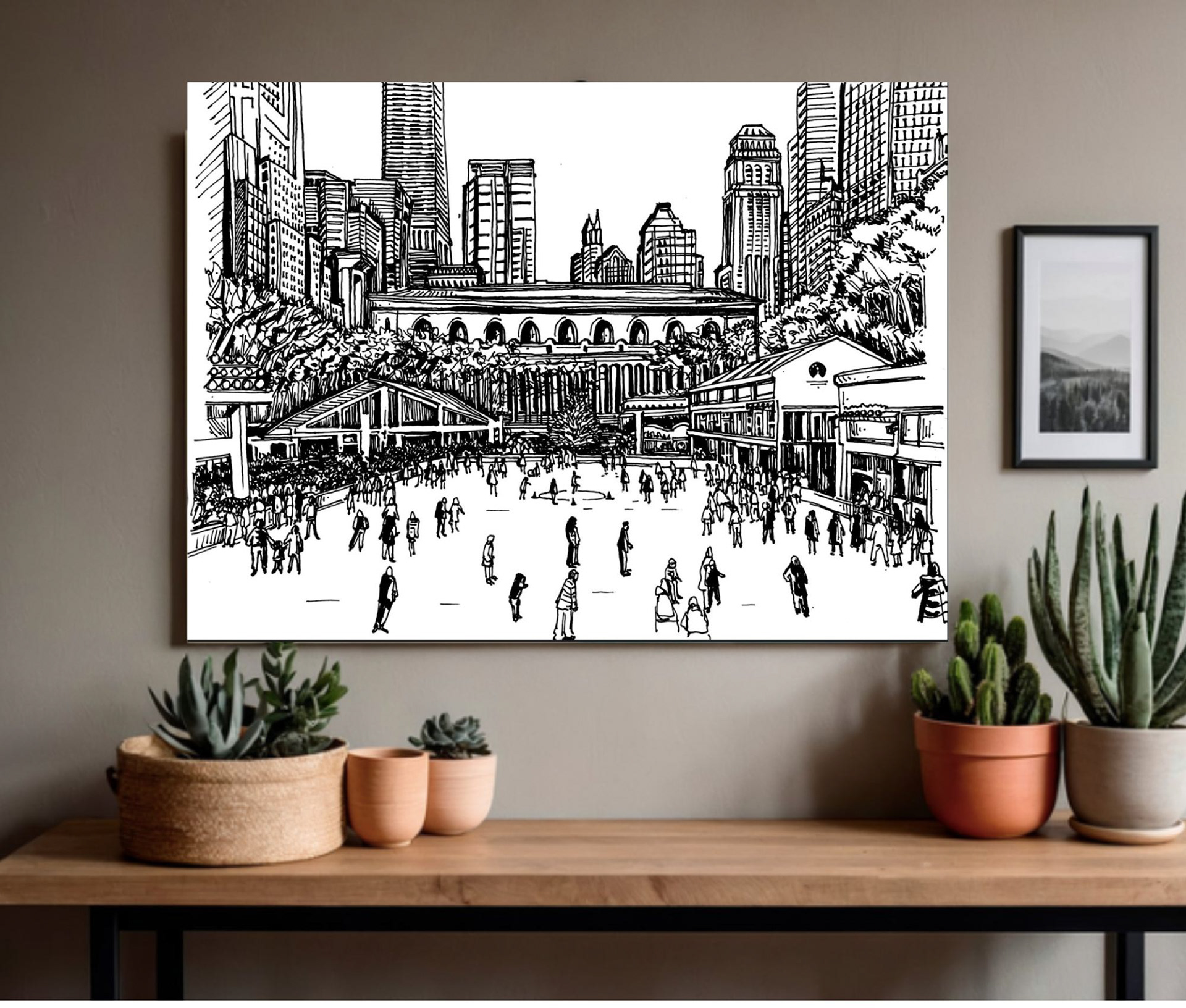 Colorful illustration of New York City life featuring buildings, pedestrians, and lively city energy.