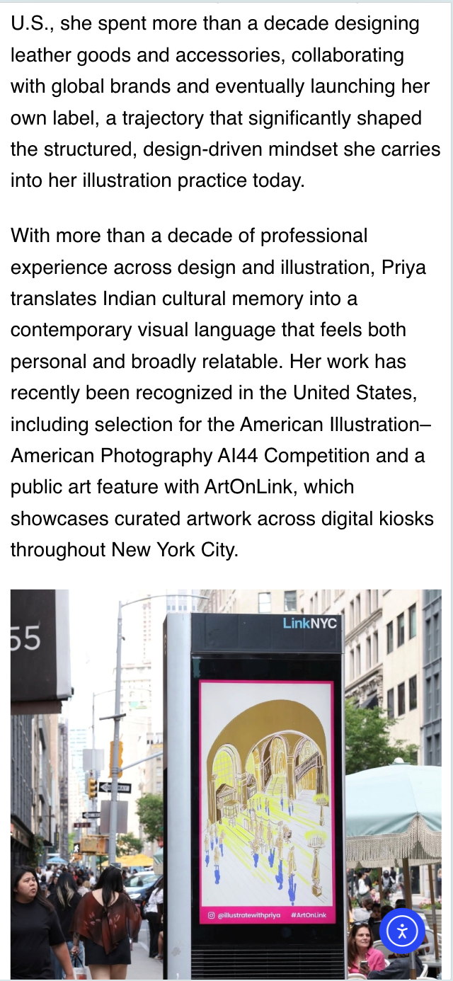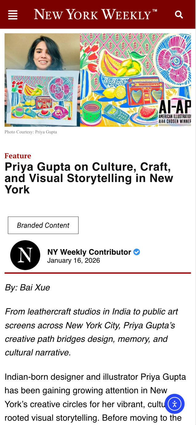 NY Weekly speaks with illustrator and designer Priya Gupta about culture, craft, and visual storytelling in New York. In this exclusive interview, Gupta reflects on her multidisciplinary practice spanning illustration, accessories, and design, and how her Indian cultural roots continue to inform her contemporary visual language.